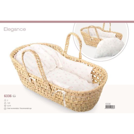 Canastilla de mimbre con asas, protector, colchón y cojín de arias